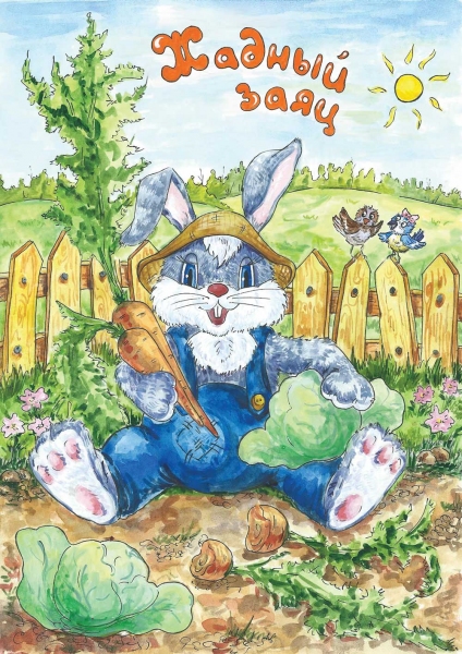 Акварельная иллюстрация к сказке Жадный заяц обложка
