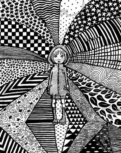 сумасшествие графика психоделика детали черно-белое девочка