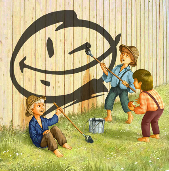 Дети рисуют на заборе