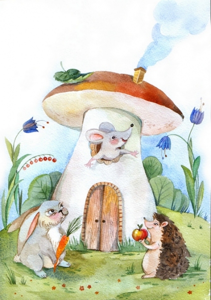 # акварель # иллюстрация # грибок # животные # малыши