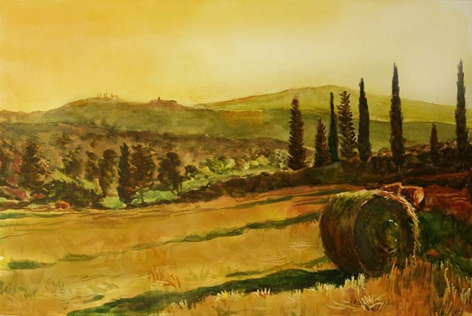 Итальянский пейзаж со стогом сена
