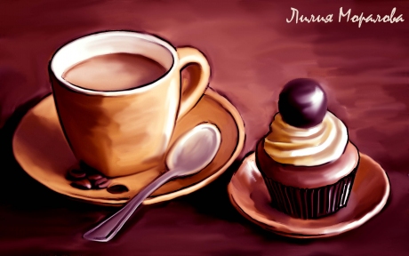 #иллюстрация #кофе #пирожное #рисунок #перерыв #подарок
