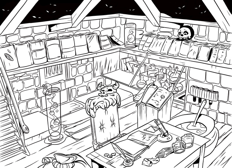 Комната алхимика, скетч, линия