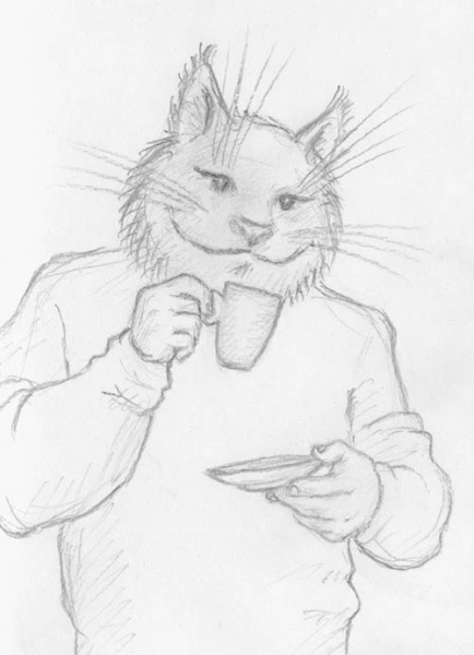 Кот, пьющий чай