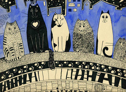 Сидят котейки, ночные звери на мостовой. У каждого свой характер.