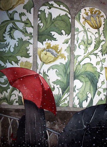акварель графика март зонт