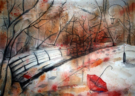 акварель графика осень зонт