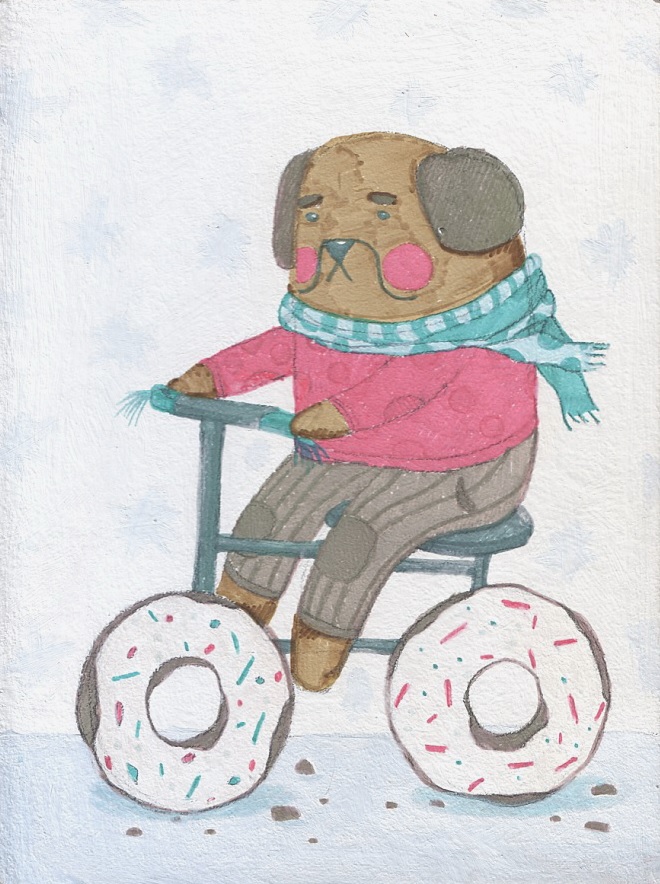 собака#illustration#иллюстрация#dog#велосипед#snow#пончик
