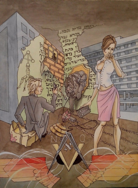 Обложка для первой книги серии мистических романов "Красный Агел" Василия Чибисова. Стадия иллюстрации.