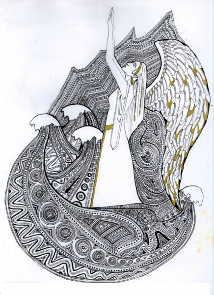 Арт по мотивам песни Мельницы "Обряд". Тушь, перо.