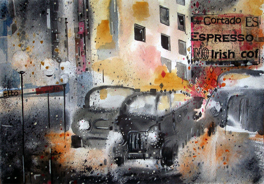 акварель графика город авто
