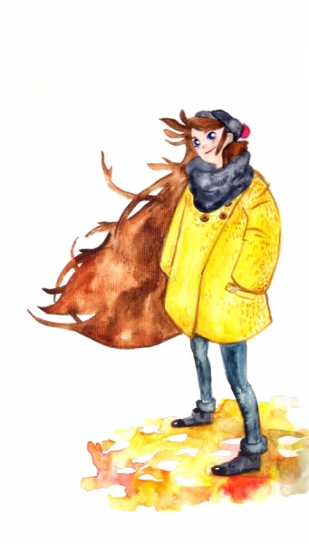 акварель осень девушка