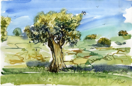 Палистина дерево солнце авкварель