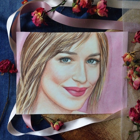 Портрет Дакоты Джонсон. Цветной карандаш.