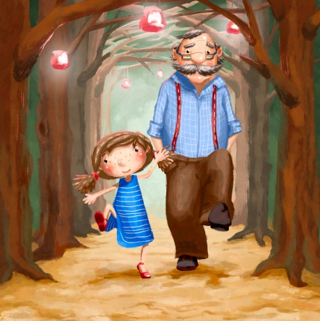 # art # иллюстрация #арт #рисунок #персонаж #illustration #масло #прогулка #дед #внучка #девочка #аллея