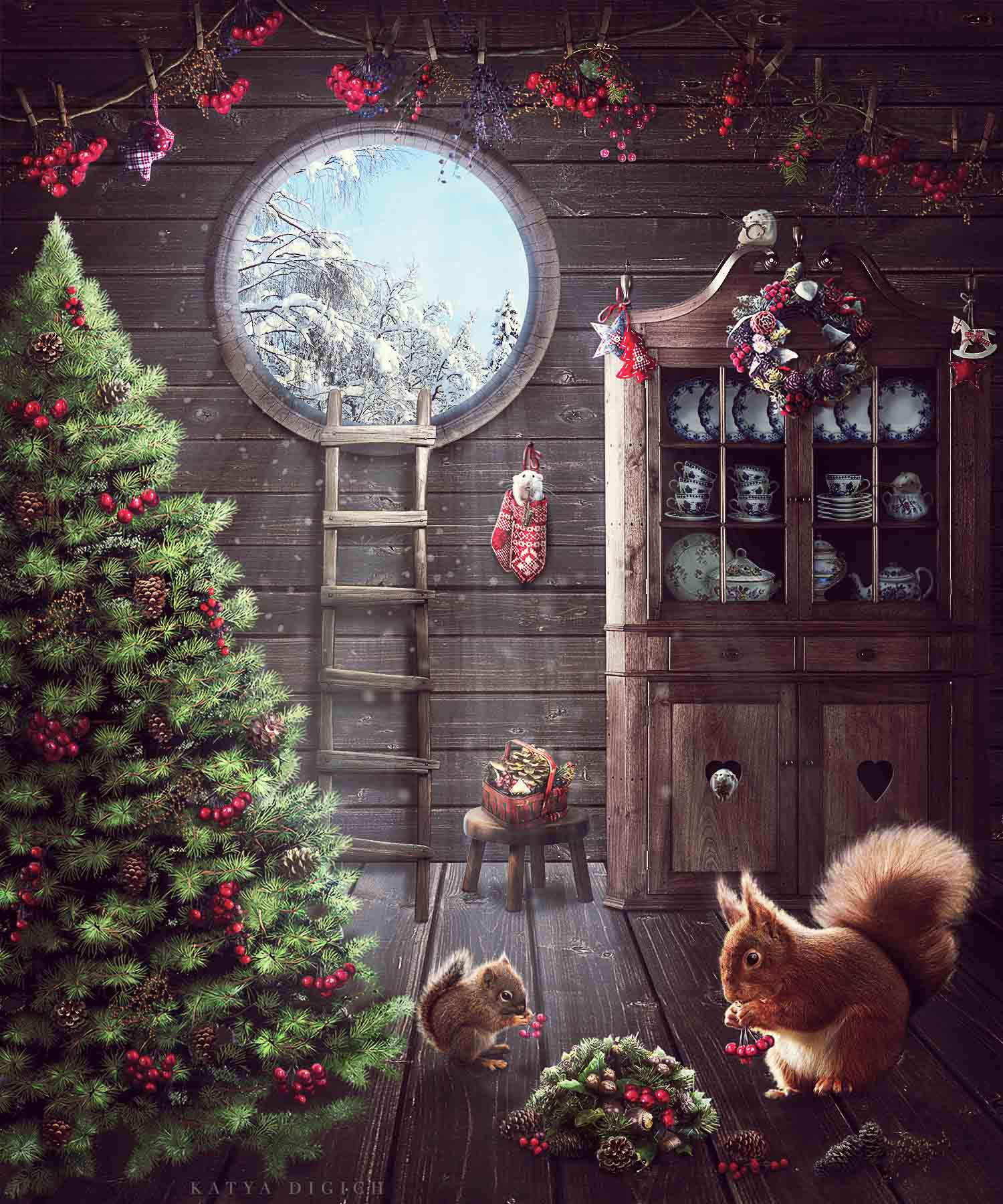 #ёлка #зима #рождество #белка #коллаж