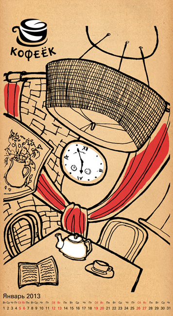 Серия иллюстраций для календаря сети кофеен