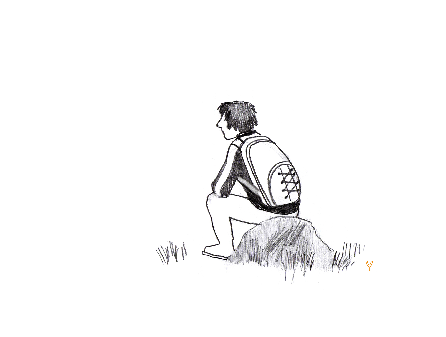 sitting on a stone