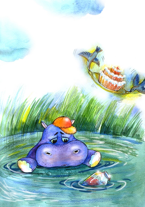 # акварель # бегемот # сладости # сладкоежка # болото # фантазия # сказка # детское