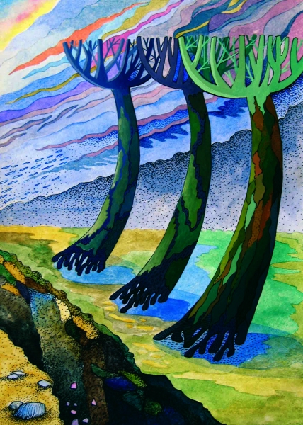Березина Анна художник иллюстрация солнце деревья небо облачно