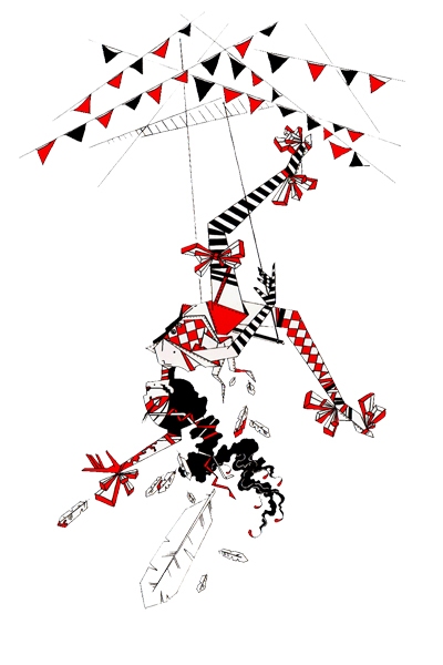 Иллюстрация к конкурсу "Цирк Судьбы" по новелле Олега Роя. Формат А3 297х420мм. Бумага. Материал - тушь, гелевая ручка. Серия "Острые леди".