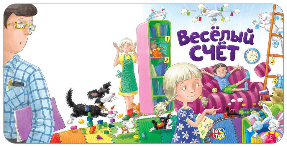 обложка весёлый счет книга мальчик девочка папа мама щенок котёнок квартира