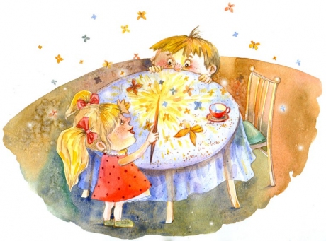 # акварель # девочка # мальчик # палочка # акварель # стол # комната # фантазия # сказка # детское