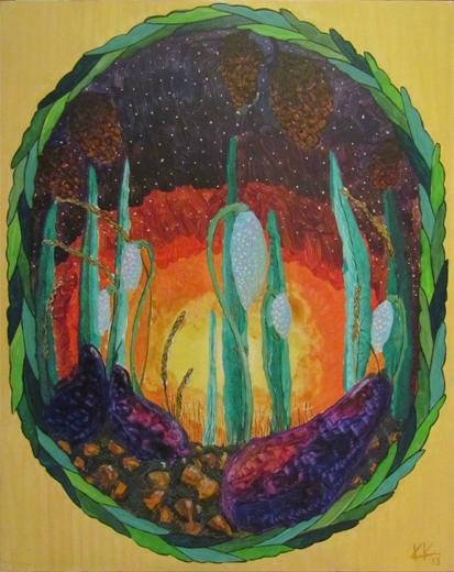 Акрил. Нарисована на деревянном щите.